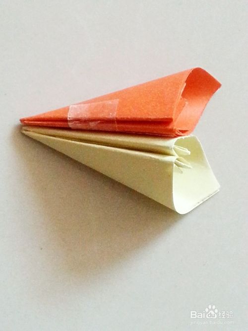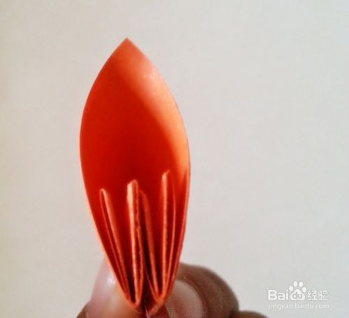 放好胶后把折好的折纸向内折成圆筒形粘和好(如图)其中一个花瓣就折好了!
