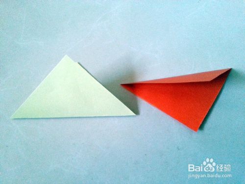 折成三角形的折纸,把两边的边角向内对折(如图),折出有两个小三角的四方形!