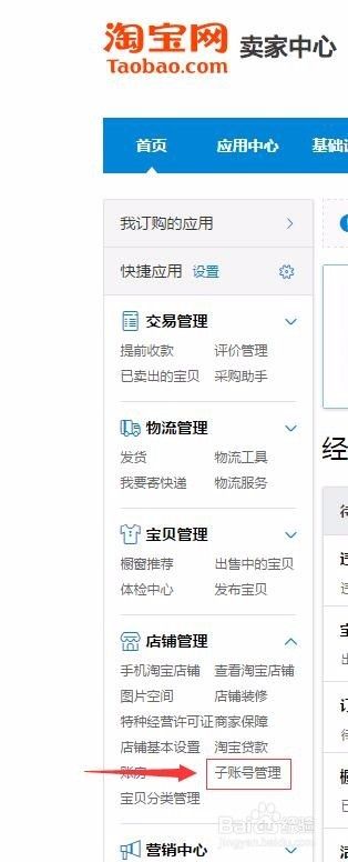 登录淘宝账号,进入【卖家中心】→【店铺管理】→【子账号管理】,淘宝卖家等级达到3个心以上才可以设置子账号。