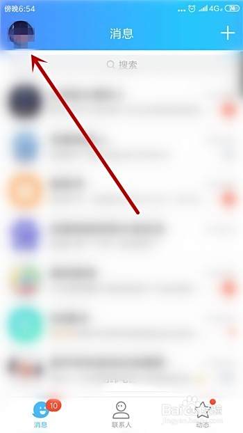 在手机QQ里点击左上角的QQ头像,如图所示。