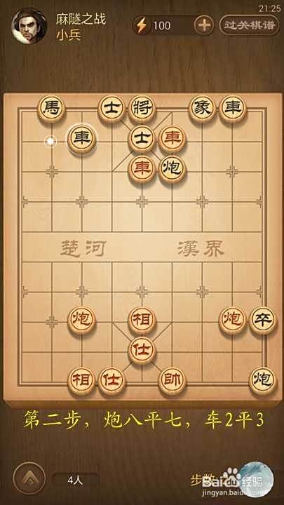 第二步,炮八平七,车2平3;分析:红方欲炮下底将军,黑方车阻止。