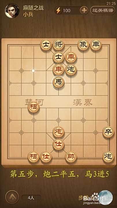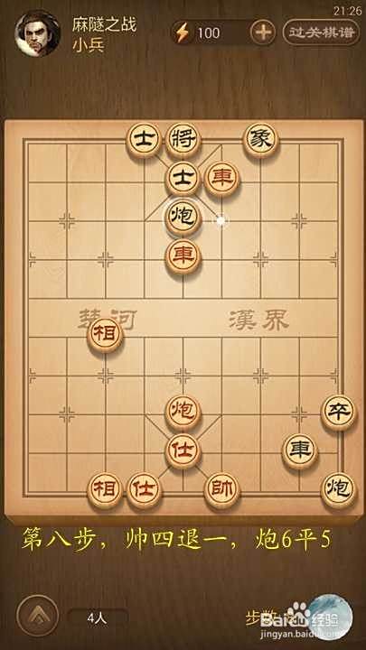 第八步,帅四退一,炮6平5[继续阻挡中炮]