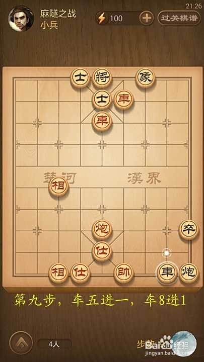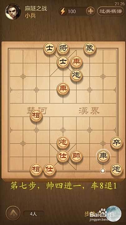 第七步,帅四进一,车8退1[继续将军]