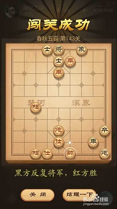 分享一下天天象棋春秋五霸第143关麻隧之战破解方法。此局看起来红方略占优势,其实仔细分析,红方在棋子上面并不占优势。此局的精妙之处在于红方有相仕全,黑方无法攻破,同时红方恰恰也是利用“相”而最终获胜的。原棋局如下