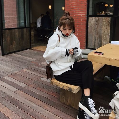 搭配二:白色连帽卫衣+黑色针织阔腿裤