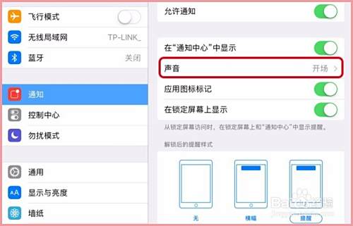 QQ通知类型为声音和横幅,设置锁屏后通知消息依旧会亮屏显示,从屏幕顶部向下轻划会显示“通知中心”,同时也开启声音。而解锁后的提醒样式有无、横幅和提醒三种,横幅就是弹出消息后再消失,而提醒会一直出现在通知中心直到使用者清除或打开看。
