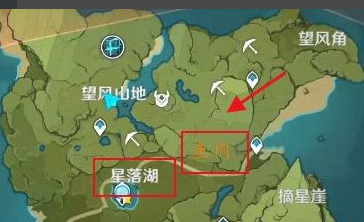 最后去往【星落湖】,可以采集到【鱼肉】材料。