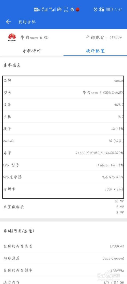 接着我们在硬件配置页面中,可以看到第一栏就是基本信息,包括品牌,型号,设置,主板等待,我们往下滑动手机。