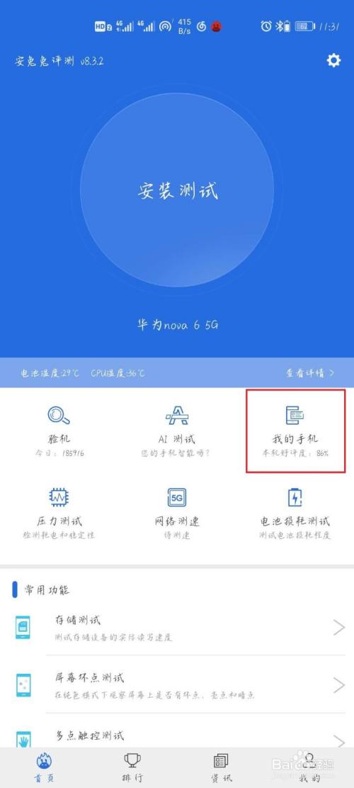 之后我们打开安兔兔界面后,找到我的手机选项,单击即可进入我的手机页面。