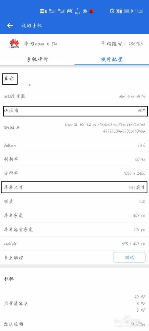 最后我们滑到显示一栏停止,在显示里我们可以看到供应商为ARM,这就是我们华为手机屏幕的供应商了。