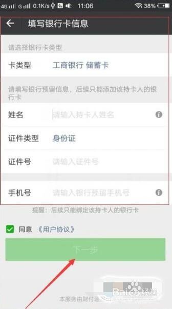 然后输入姓名、身份证号、手机号等,点击“下一步”按钮。