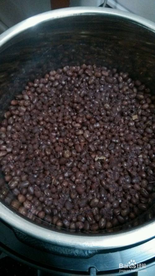 高压锅内放入洗干净的红豆,再倒进比红豆高2厘米(一节手指头)的水,盖上盖子按煮粥的程序即20分钟的时间