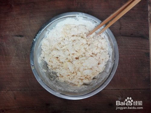 将搅拌好的鸡蛋汁倒入面粉中继续搅拌,如果鸡蛋汁太少,可添加适量的清水搅拌,直至将面团和成光面为止。