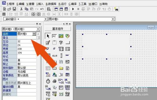 接着,在左边工具栏中,鼠标左键选择图片框控件,如下图所示。