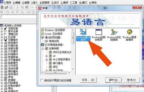 打开易语言2020软件,鼠标左键单击菜单【程序】下的新建,在弹出的新建窗口上,选择窗口程序,并单击【确定】按钮,如下图所示。