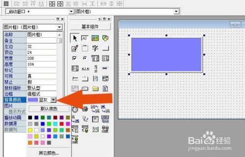 接着,在【图片框】控件的属性面板中,设置图片框的背景颜色,如下图所示。