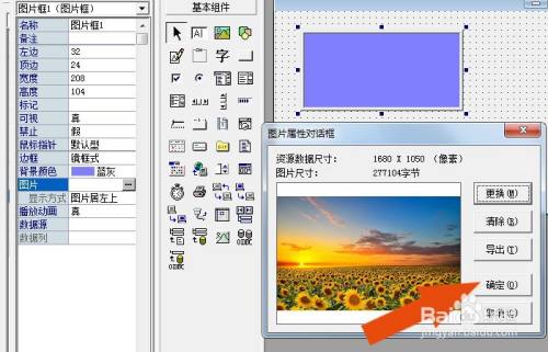 接着,鼠标左键单击【图片框】控件的属性面板,如下图所示。