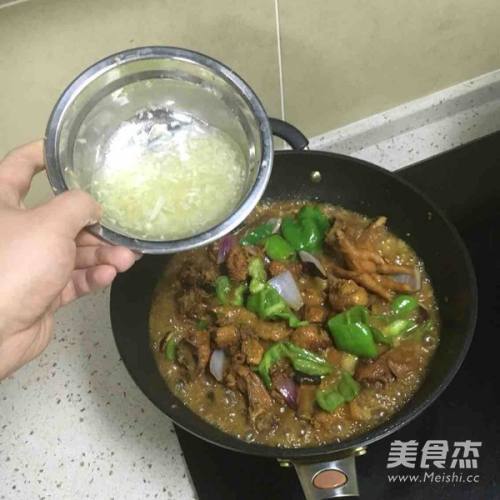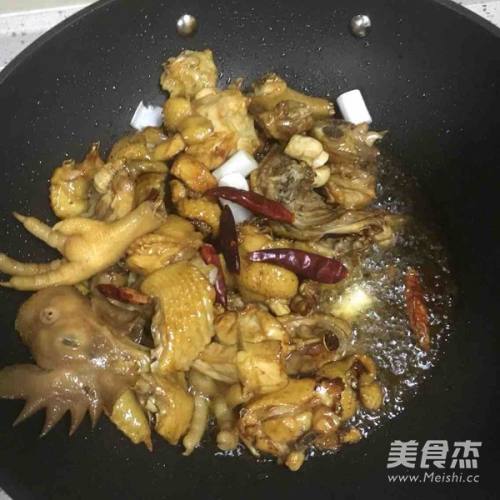 5加干辣椒、葱段……