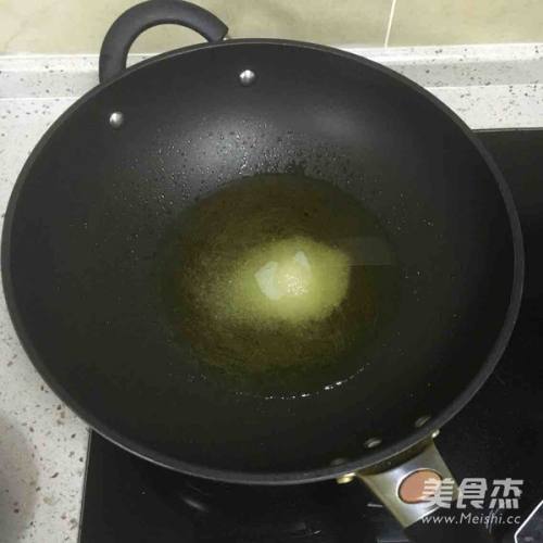 3冷油放糖,中火炒糖………
