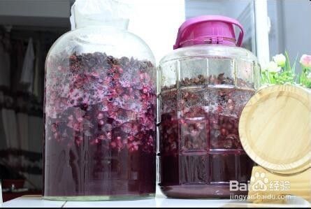 达到止发酵点后,葡萄皮浮在上面,颜色由深变浅,葡萄籽和大部分葡萄肉的残渣沉在瓶底,此时就应该用过滤法(此时用到纱布)把残渣和酒液分离