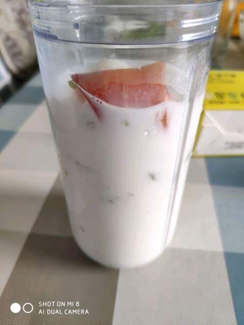 2牛油果切四分之一,本人不太喜欢牛油果的味道,所以没有多放,可以接受牛油果味道的朋友可以放半个或者整个