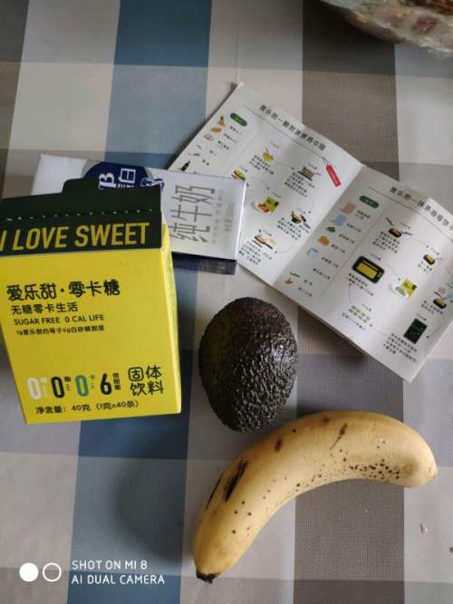 5香蕉,牛油果,加入半包爱乐甜零卡糖
