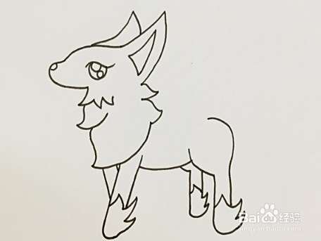 空出背部翅膀位置,将九尾狐的身体躯干与四肢画出来之后,还要补充画出四足上的毛发。