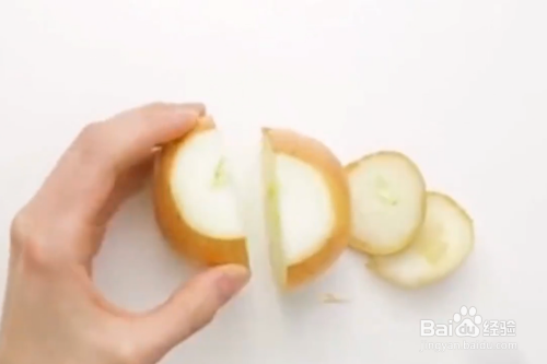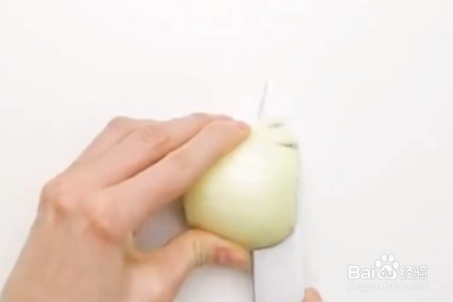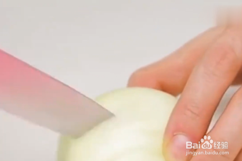 将洋葱对半切开。