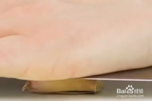 将大蒜放在刀下面,用力压一压。
