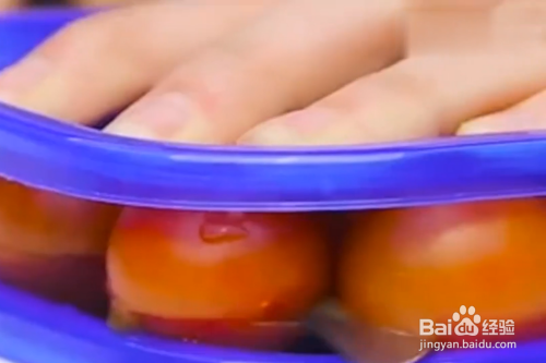 将小番茄放在两个盖子中间。