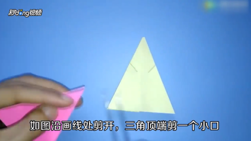将两侧剪开,三角顶端剪一个小口。