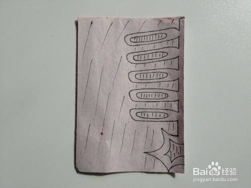 在对折好的彩纸上绘画出一半的鞭炮图案。