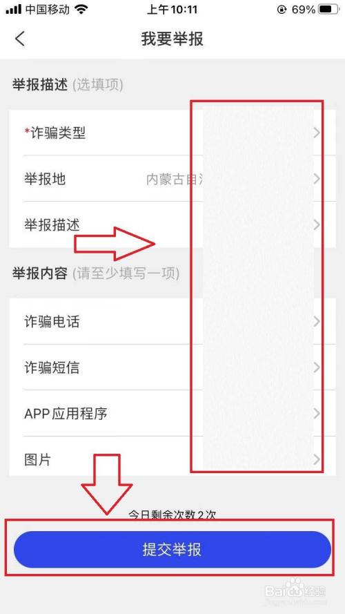 4.最后填写被诈骗的其他佐证材料和个人信息,然后点击提交举报即可追回我们被诈骗的钱款。