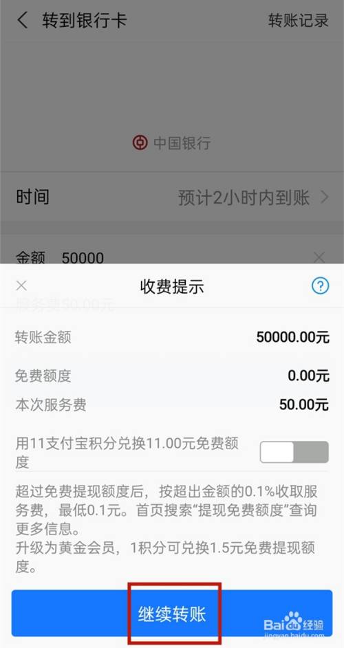 输入小额度转账金额后,点击继续转账并输入支付密码即可。