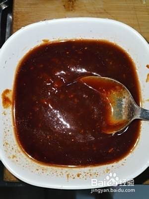 5调酱汁!两勺黄豆酱,两勺番茄酱,两勺生抽,1.5勺蚝油,一勺白糖,一勺鸡精,一勺水,搅匀备用