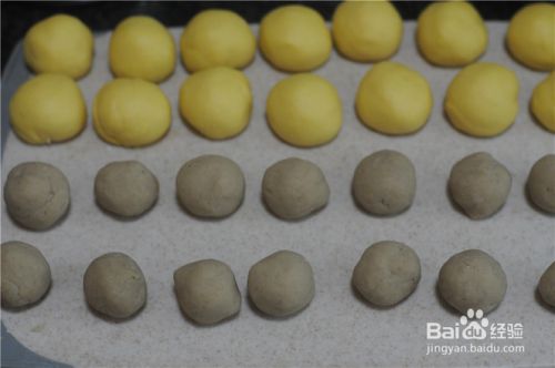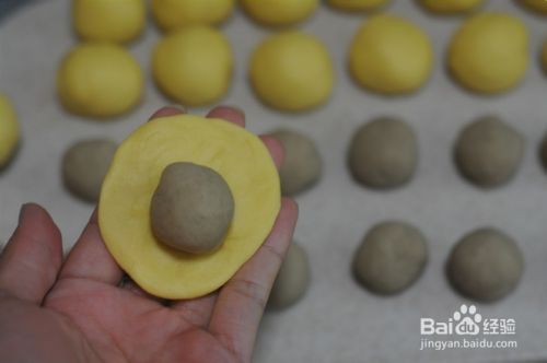 面团分成30克一个的小剂子,板栗馅分成15克一个