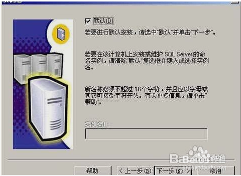 在"实例名"界面,选择 "默认" 的实例名称既可,再单击“下一步”按钮: