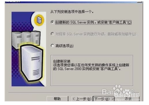 6然后在 "安装选择" 界面中,选择 "创建新的SQL Server实例..."既可: