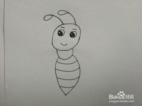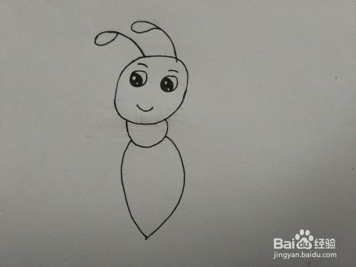 在脑袋下画出蚂蚁的身体,尾巴处画的尖一点。
