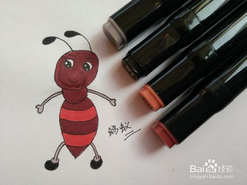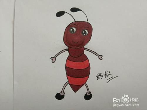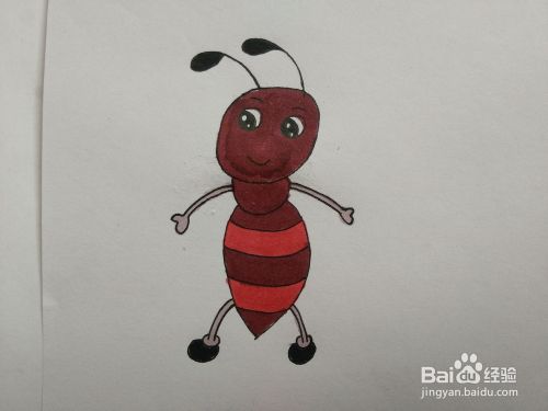 最后给画好的蚂蚁涂上颜色,这样一幅卡通蚂蚁简笔画就画好了。
