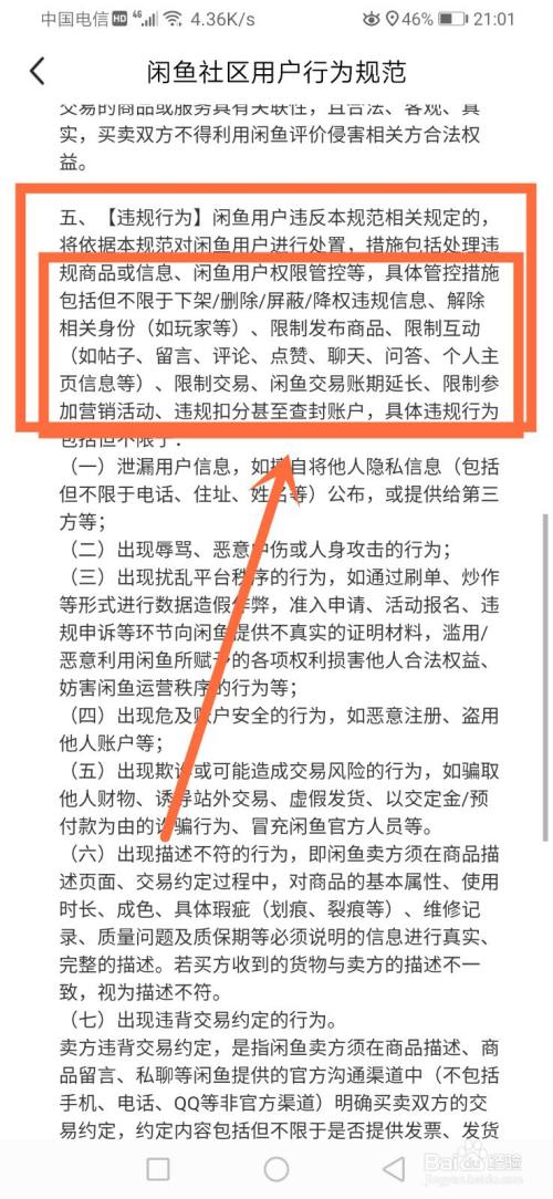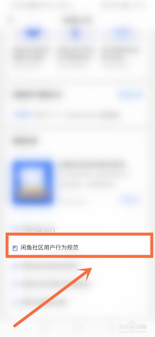 在公约界面,找到闲鱼社区用户行为规范点击进入。如图