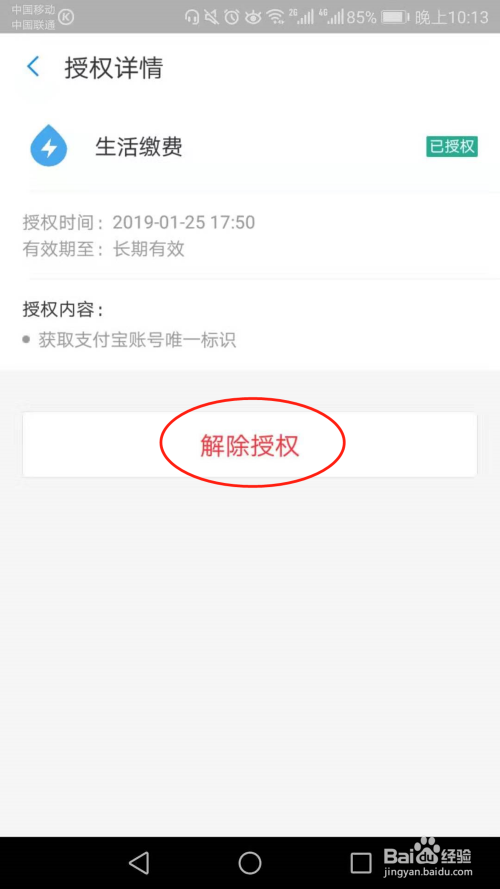 随即,进入账号授权界面,因为小编的授权里只有生活缴费,所以我就点生活缴费就可以了。如果大家有很多个的,就点击要解除的那个