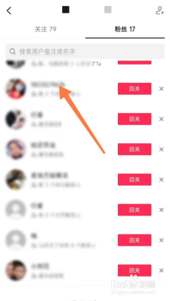 我们进入抖音页面后,在关注或粉丝列表找到视频聊天的好友;