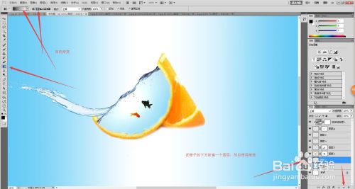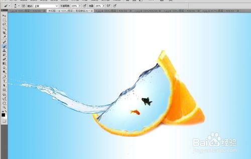 橙子,水,鱼,飞溅的水组成了水果鱼缸!给大家讲解下它们组合的步骤,希望可以帮到大家!