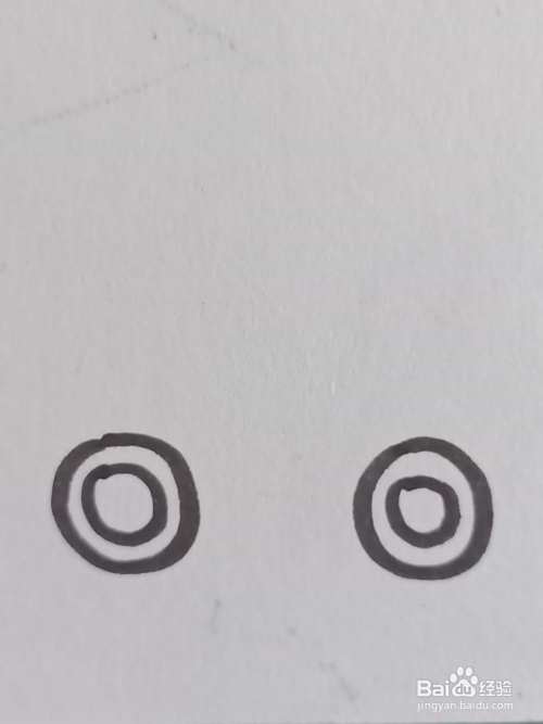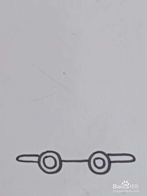 用勾线笔画小汽车的轮胎。两个大小不同的圆。
