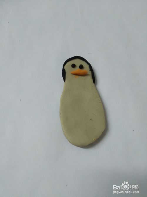 用黑色搓一个细细的长条,粘在企鹅头部边缘,表示头部后面的颜色。