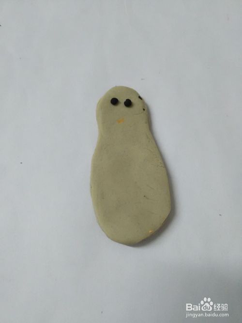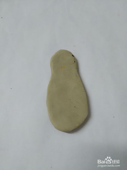 先用白色彩泥捏一个葫芦的形状,表示小企鹅的头和身体。