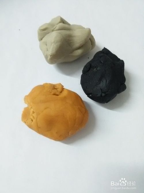 捏这个小企鹅,需要桔色、黑色、白色三块彩泥。