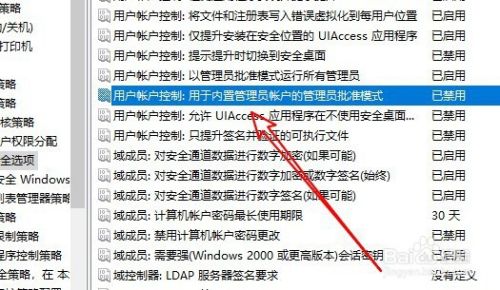 然后在右侧的窗口中找到“用户帐户控制:用于内置管理员帐户的管理员批准模式”的设置项。