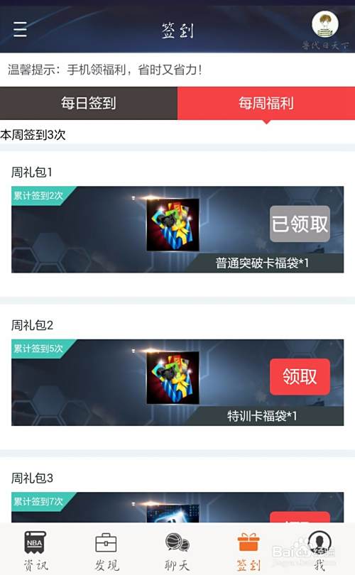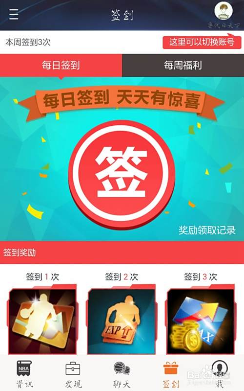 在软件下方有“签到”栏,你可以进行签到,领取相关奖励。